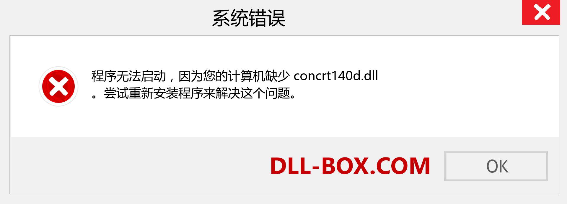 1. 程序无法启动,因为您的计算机中缺少 concrt140d.dll。尝试重新安装程序以解决此问题。